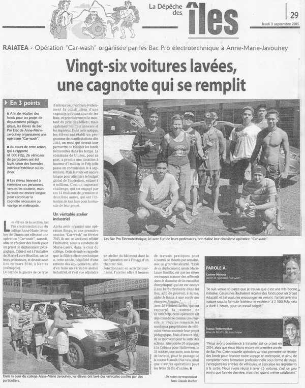 Car wash des 1ère pro, le samedi 29 août, merci aux propriétaires des véhicules.